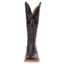 Rios Of Mercedes Men’s Ride Ready Black Full Quill Ostrich 15in. Black Calf Top Cowboy Boot